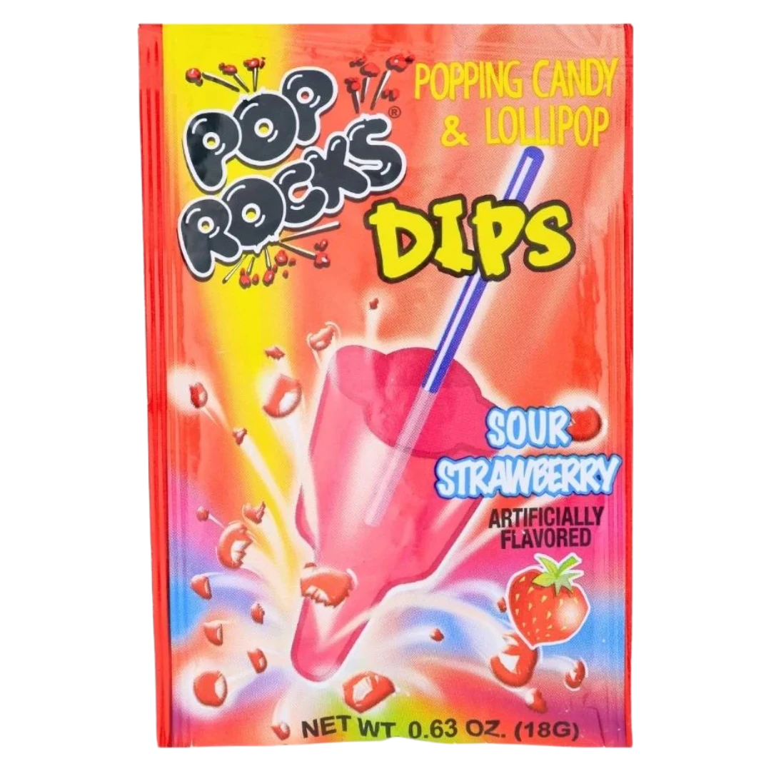 Refreshingly sweet Sour Strawberry flavoured popping candy. As soon as they hit your tongue you will experience the intense popping sensation and crackly, fizzing sounds that Americans have loved since the 1970’s! Now with a scrummy candy lollipop, so you can lick and dip the popping candy and get more on your tongue at a time! It’s a flavour sensation!