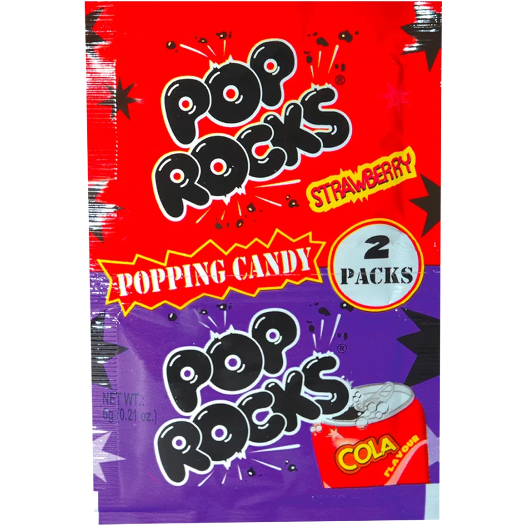 Pop Rocks are the fun and explosive popping candy, an iconic product of the USA which became wildy popular in the 70’s. They provide great fun and sizzling entertainment for kids and adult alike. This candy rocks have tiny pockets of carbonation, which crackle and fizzle on your tongue with popping noises you can hear as the CO2 is released. This packet, featuring the original fireworks style, contains a handful of the sweet candy rocks which are sure to make your mouth pop! Go on and taste the explosion in this pack of refreshing strawberry & cola flavoured Pop Rocks!