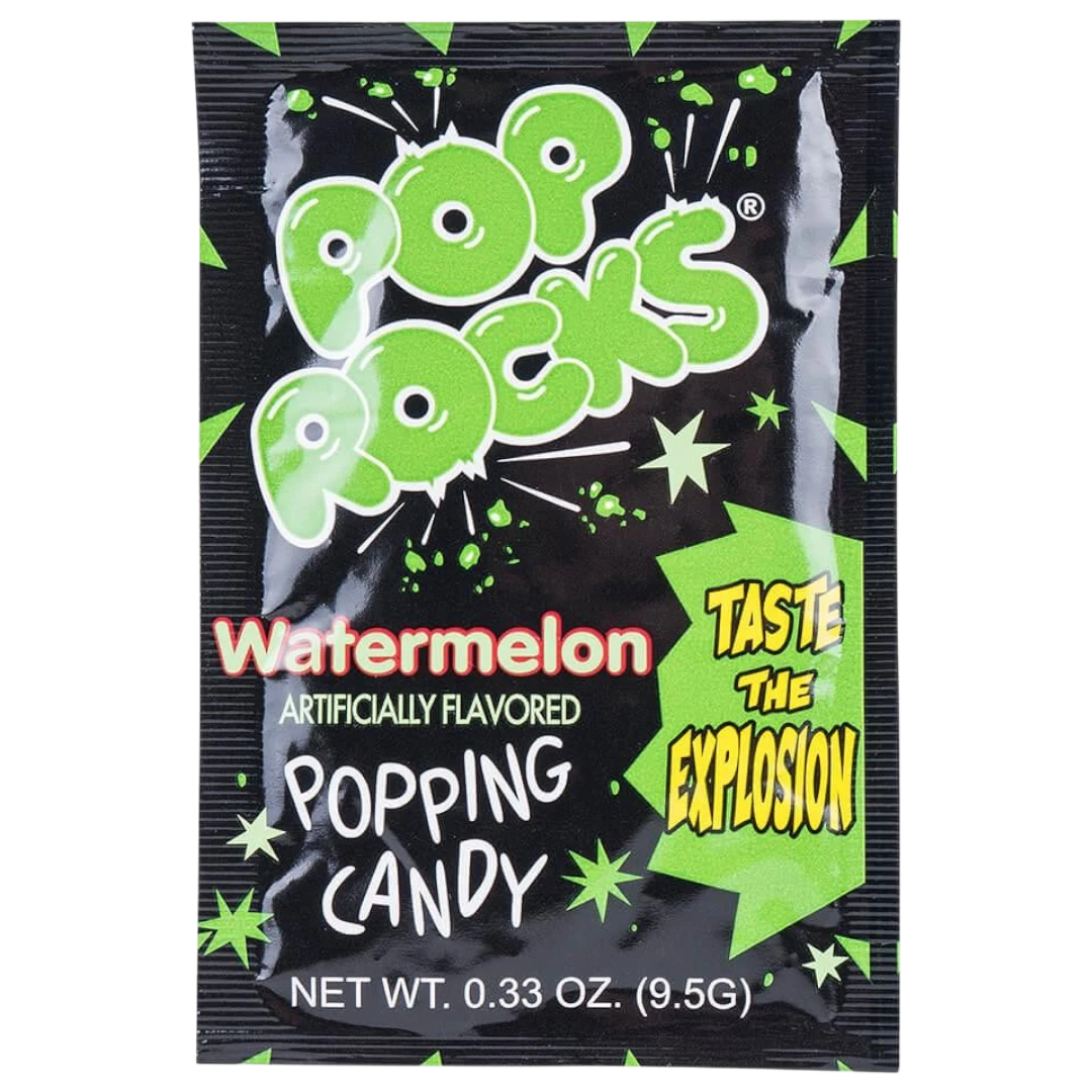 Pop Rocks are the fun and explosive popping candy, an iconic product of the USA which became wildly popular in the 70’s. They provide great fun and sizzling entertainment for kids and adult alike. This candy rocks have tiny pockets of carbonation, which crackle and fizzle on your tongue with popping noises you can hear as the CO2 is released. This packet, featuring the original fireworks style, contains a handful of the sweet candy rocks which are sure to make your mouth pop! Go on and taste the explosion in this pack of refreshing Watermelon!