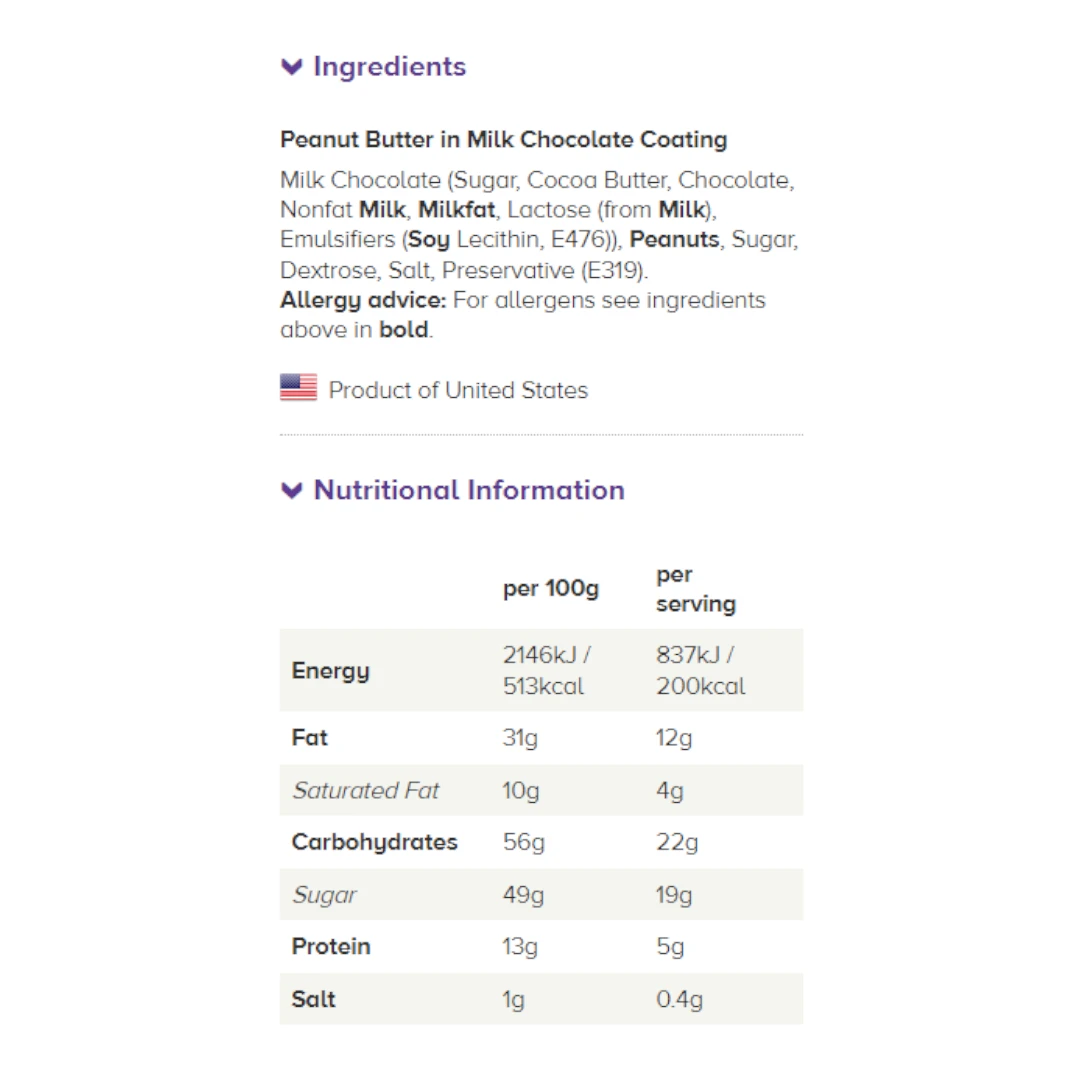 | MILK chocolate (sugar, cocoa butter (MILK), chocolate, nonfat MILK, MILKfat, lactose (MILK) (from MILK), emulsifiers (SOY lecithin (E322), e476)), PEANUTs, sugar, dextrose, salt, preservative (e319) |