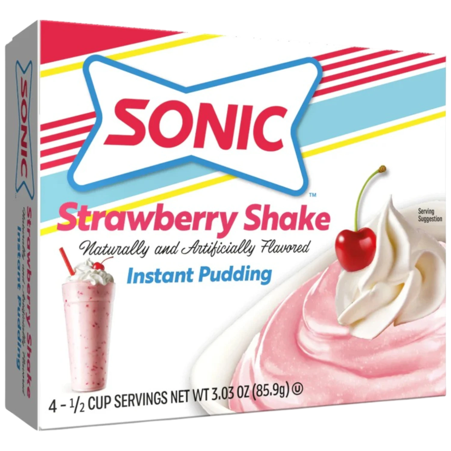 Sonic Strawberry Shake Instant Pudding – Indulge in a deliciously fruity and creamy dessert mix that’s inspired by Sonic’s iconic strawberry shake. Simply add milk and chill for a refreshing treat, or use as a scrumptious pie filling for a unique twist on a classic dessert. Ideal for anyone who loves combining nostalgic flavours with creamy indulgence!