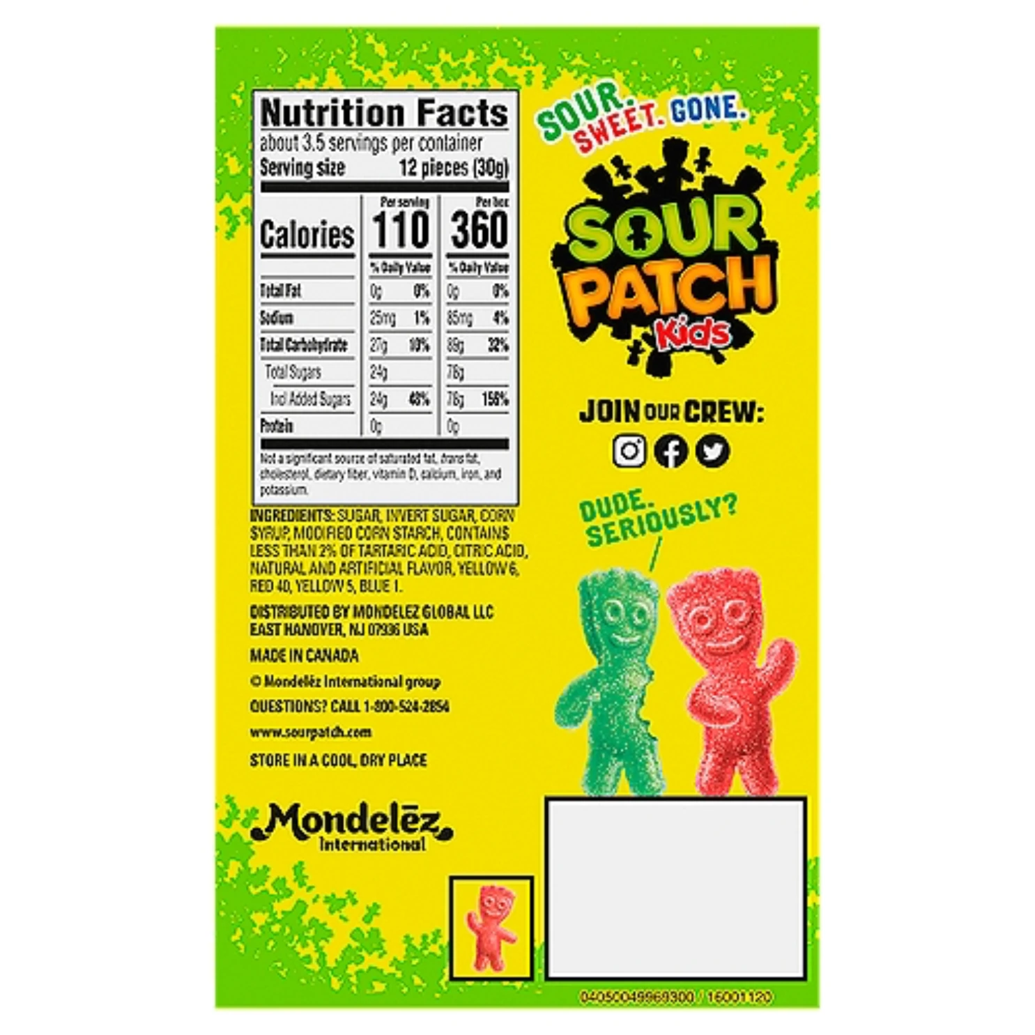 First they’re sweet, then sour, then gone! Sour Patch Kids are delicious soft and chewy candies with the traditional Sour Patch Kids shape for a hint of mischief. The sealed box helps to keep this fruity candy flavourful and soft.