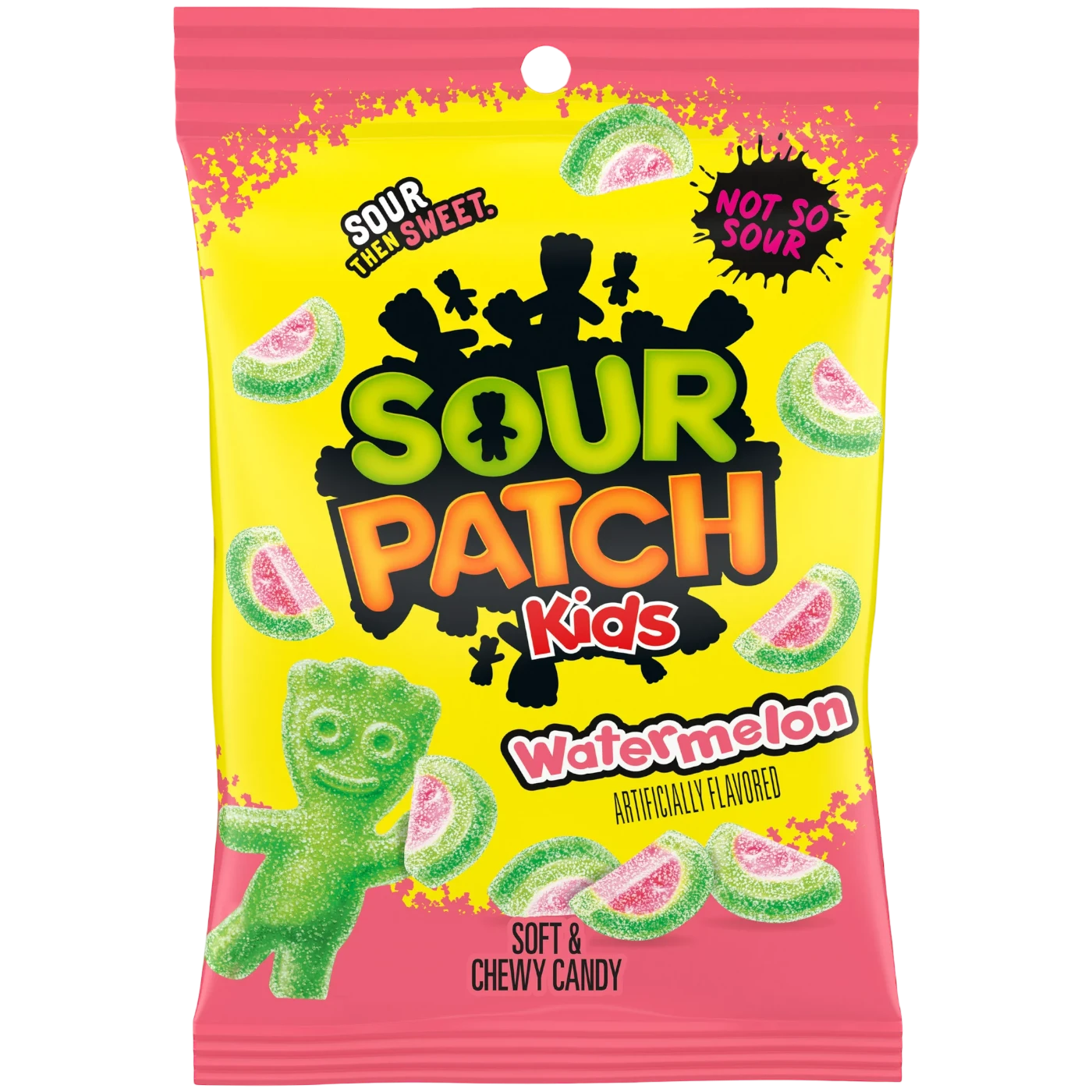 Give your tongue a real tangy-tingling sensation with this 8oz bag of Sour Patch Kids! These delightfully fruity gummies are coated in a sour sugar that will fizz on your tongue and make your mouth-pucker, before giving way to a soft and sweet chew beneath. Each one of these delicious candies is bursting with the sweet and refreshing flavour of Watermelon, and they look like slices of Watermelon too! Simply mouth-watering!