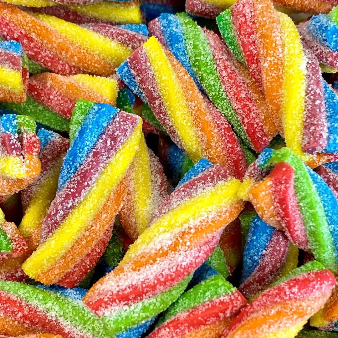 Tutti frutti flavoured sweet liquorice twisted up and then TURNED up with a delicious sour coating!