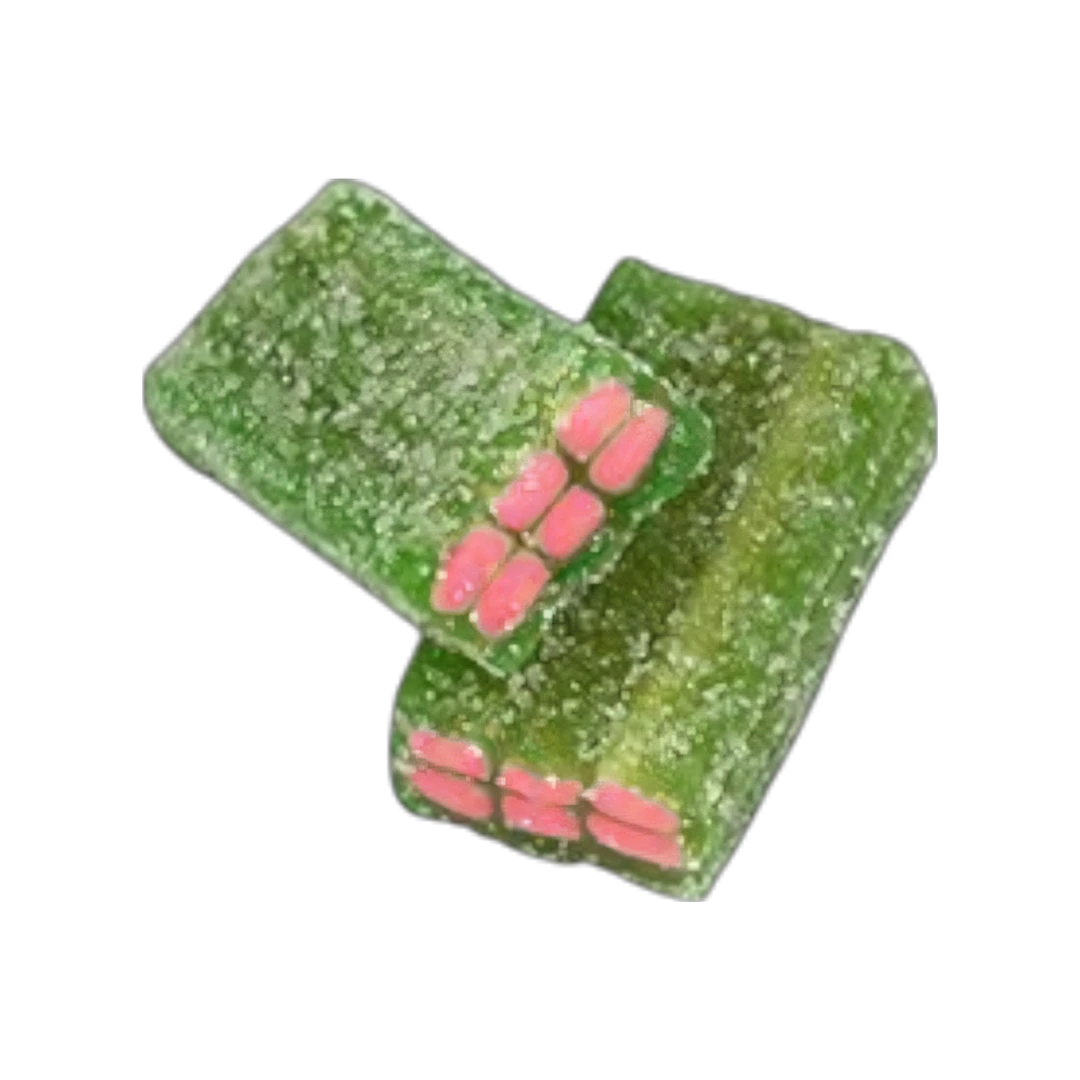 This is one for the watermelon fans. A super tasty, brick-shaped watermelon flavoured sweet liquorice packed full of fondant, topped off with some added FIZZ! Some say they’re sour… What do you think?!