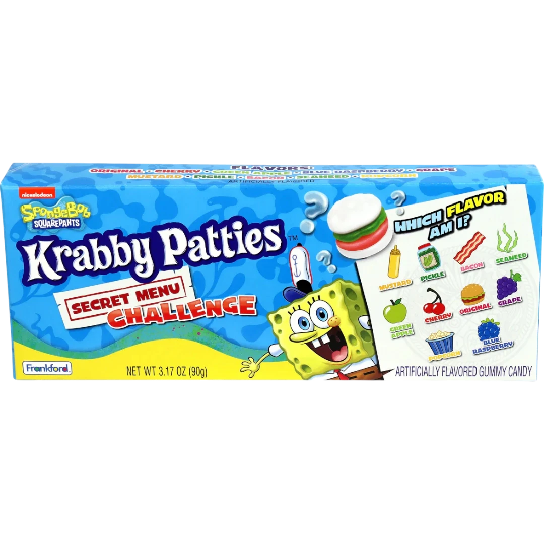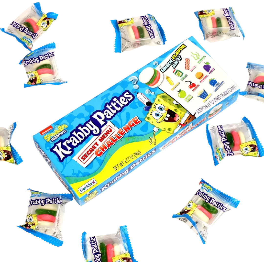 Dare to dive into the unknown, with the all-new taste test challenge! This special edition of all-white Krabby Patties gummy burgers features an assortment of ten mystery flavors that will leave your taste buds guessing. Indulge in a medley of delightful fruit flavors including green apple, cherry, blue raspberry, original, and grape or brace yourself for the unexpected with surprise tastes like seaweed, mustard, bacon, popcorn, and pickle. These make a great activity for game night with friends, social media challenge to share with friends, or gift for the SpongeBob lover of any age.