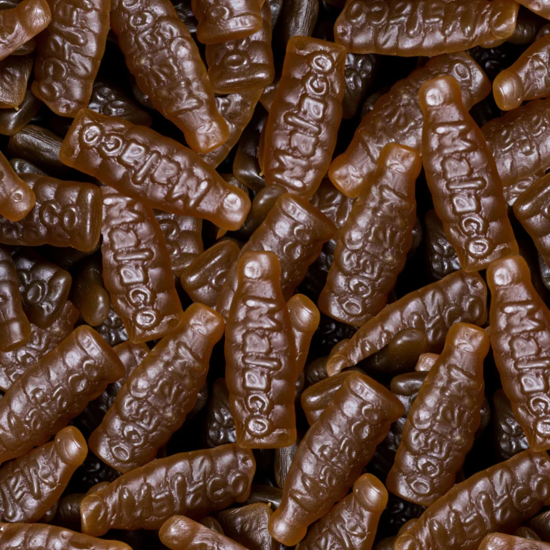 Delicious big cola flavoured bottles from Sweden! You think you’ve tried good cola bottle gummies before? Pshhh… you’ve tried nothing like these! They’re just like a crisp, refreshing sip of the finest ice cold cola on a summer’s day… all in gummy form!