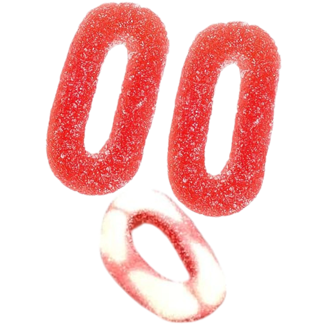 | glucose syrup, sugar, gelatin, acidulant: lactic acid; gelling agent: pectins; flavourings, colourings: E129. |