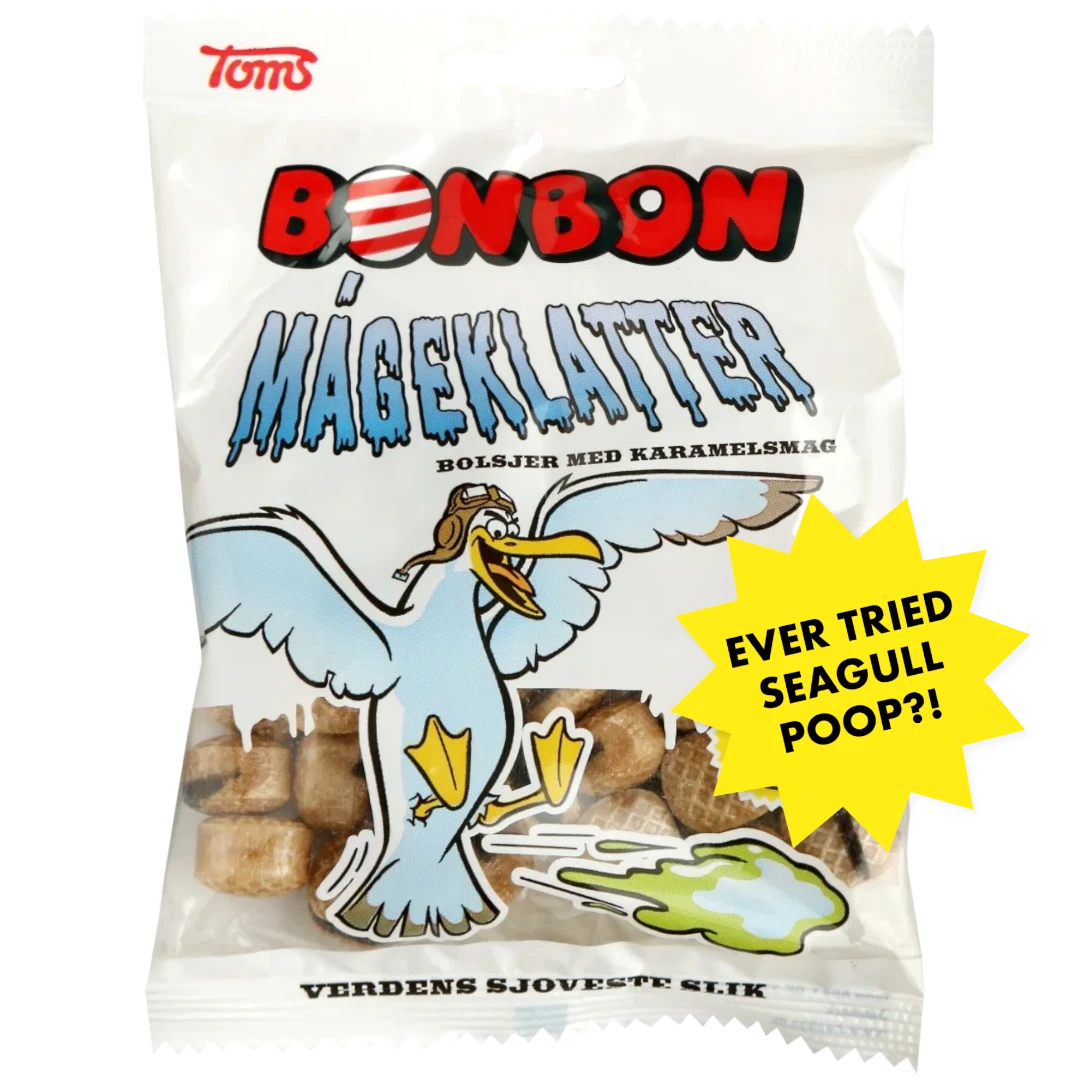 Look, we know that a bag of sweets called Seagull Poop isn’t to everyone’s taste. However, this is a rather normal phenomenon in Denmark where these are made. You see, this is what happens when you ask 7 year olds to name sweets. And surely you want to give them a try?!