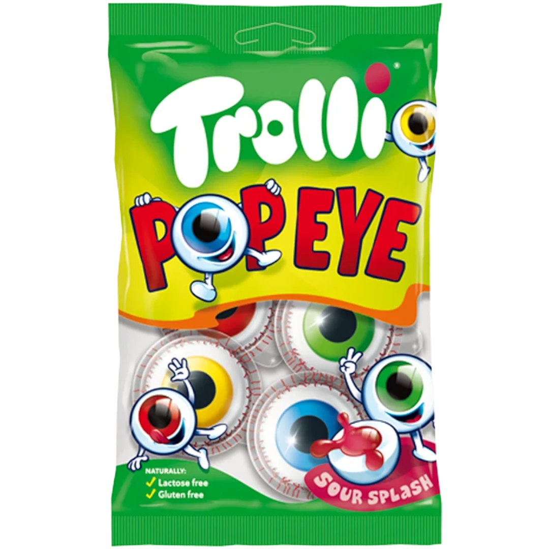 The Trolli Pop Eye was one of the very first 3D fruit gummies in the world! These goggle eyes will provide a shock at every party and are an essential item in your bag of tricks. If anyone catches you in the act, don’t get caught: just swallow the evidence in your mouth, because their spooky red filling tastes ever so delightful and tingles with a sour flavour on the tongue. You never had shivers running up and down your spine in such a carefree way.