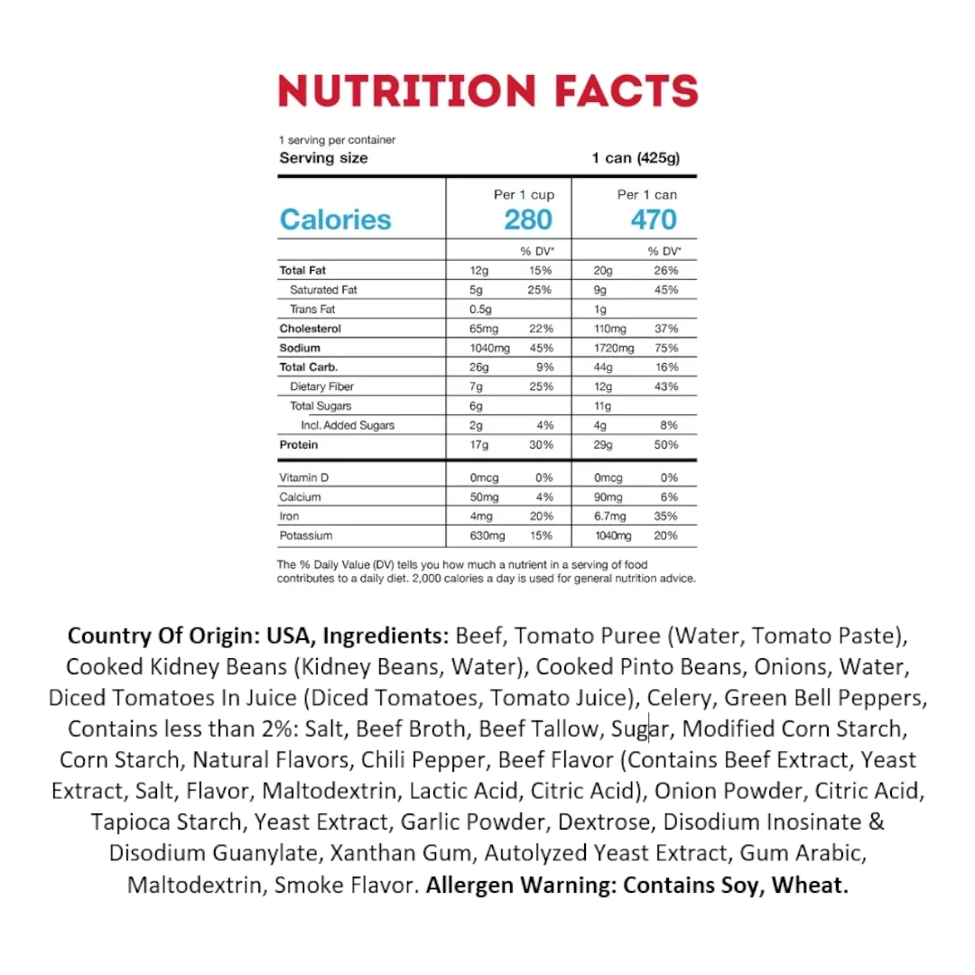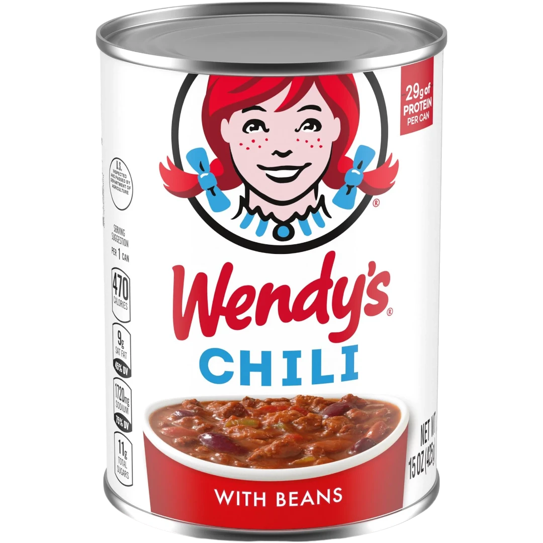 Enjoy the classic taste of Wendy’s Chili from the comfort of your own home with this perfectly spiced canned chili. Packed with beef, chili beans and lots of flavor, this hearty meal is both delicious and satisfying! If you like to keep tasty, prepared foods on hand, then this is the chili for you. It’s easy to store and prepare, making this microwave meal a great option for dinners, lunches and more. Simply heat in the microwave or on the stove and enjoy a comforting bowl of this classic meal. Plus, there are 29 g of protein per can!